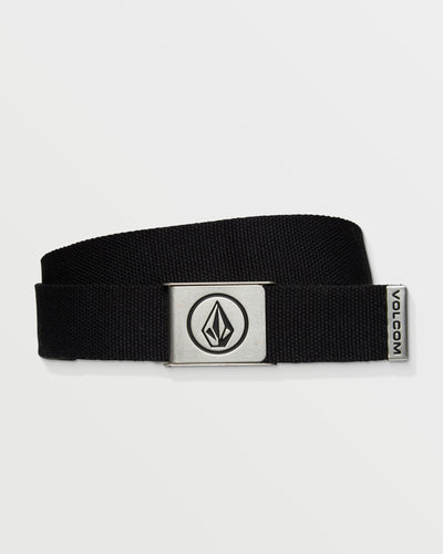 That crisp snap of a cap and the confident click of your buckle meet in the Circle Web Belt. In blackout black, this 1.5 inch web strap is cut-to-size and locks down with a metal clamp hiding a bottle opener. Stone logo deboss on the buckle, Volcom logo deboss at the tip. Ready for whatever.