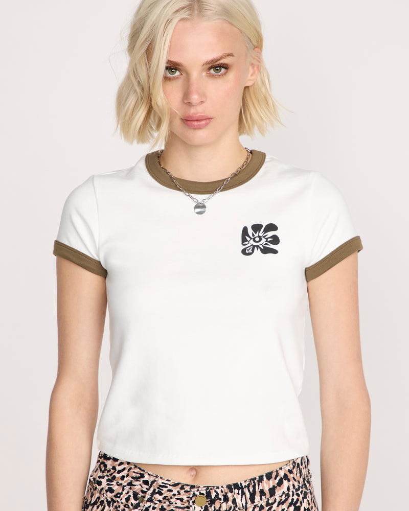 Crisp Star White hits different when the contrast binding pops. The Stoney Time Ringer is a short sleeve classic cut in stretchy 1x1 rib that moves with you, finished with smooth interior neck taping. A chest screenprint brings the attitude. Substantial feel, zero fuss.